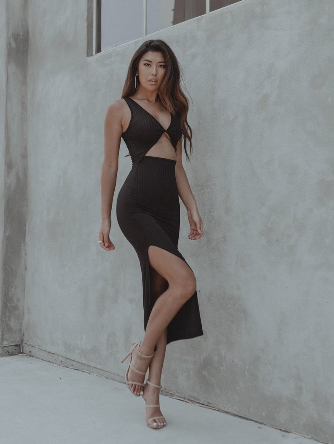 Add sleek stilettos and statement hoops for a full fashion-editorial look — or layer with a blazer for an elevated dinner-to-cocktails vibe.